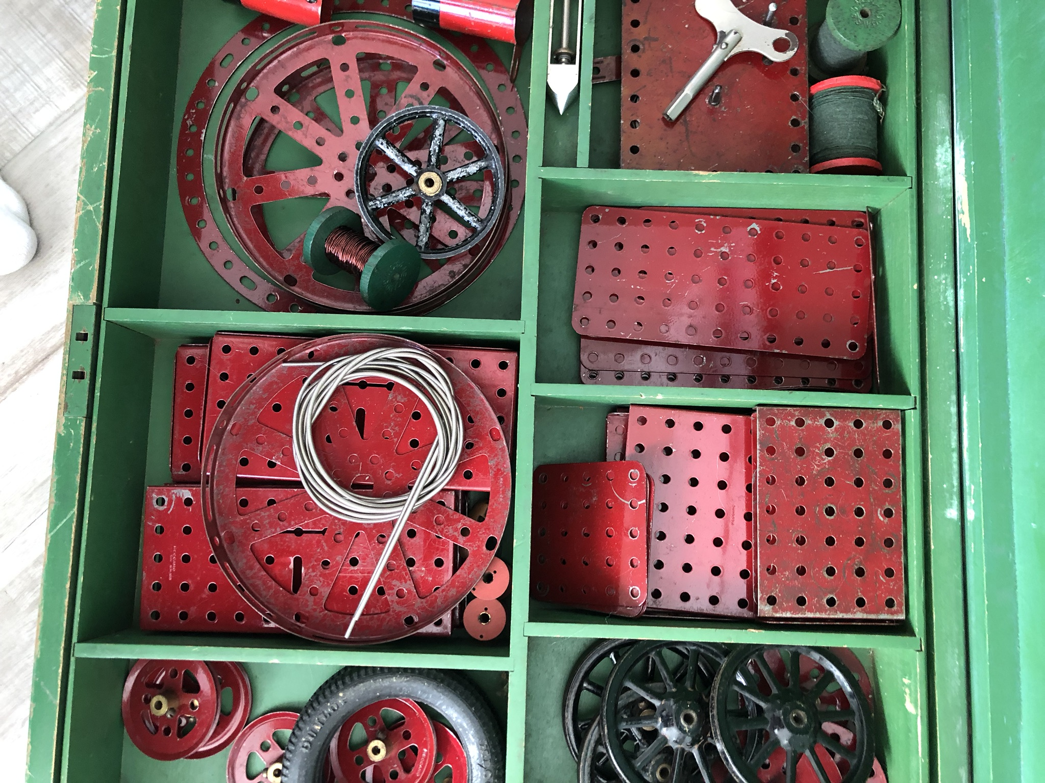 Acheté complète à environ 95% à un vendeur anglais voici une dizaine d'années, c'était un rêve d'enfant depuis que j'avais vu sa description dans un vieux manuel Meccano dont un de mes copains de collège avait hérité de son grand-père.